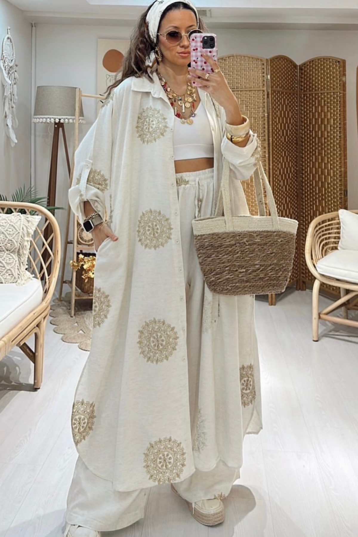 Die Länge des Oberteils beträgt ca. 120cm und der Hose ca. 100cm.